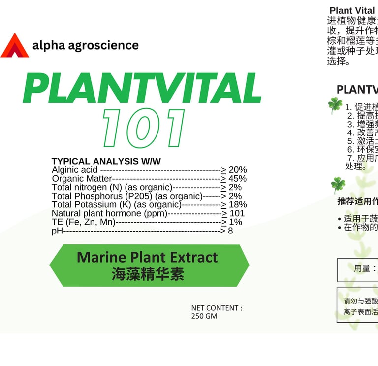 • Natural Plant Hormones (101 ppm): Plant Vital 101 is rich in seaweed-derived plant hormones that stimulate growth, increase fruit size, and enhance overall plant vigor without the need for synthetic additives.